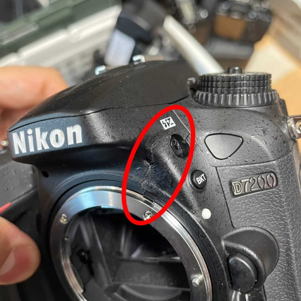 - 少し遠めからファインダー内を確認し、ファインダー窓周辺のカビの状況を確認する
