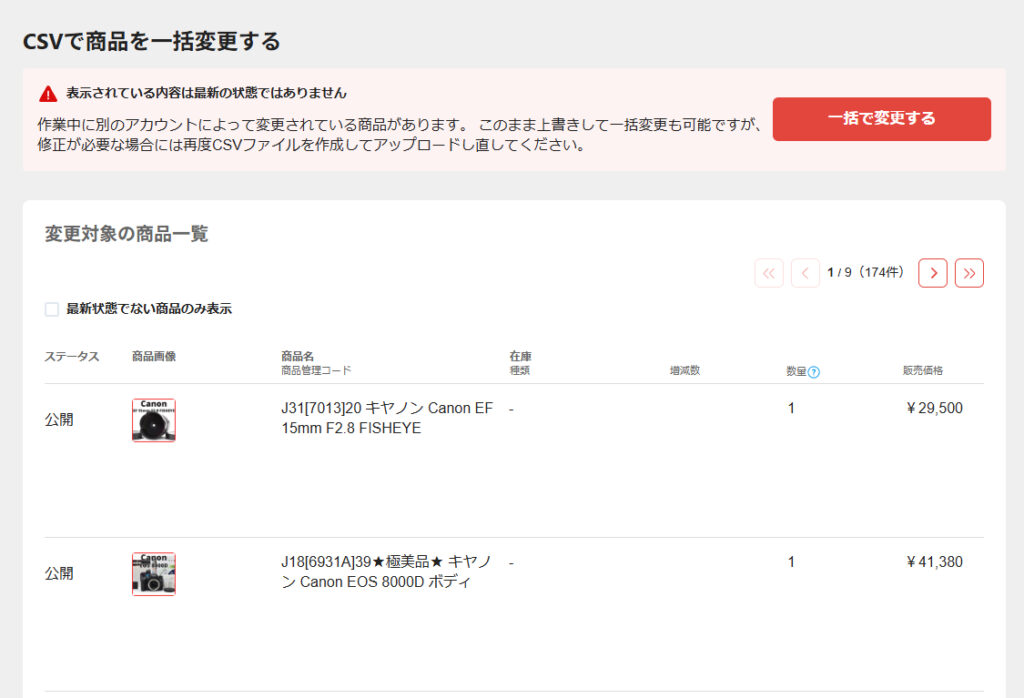 出力したCSVファイルをメルカリショップスへアップロードして完了です。